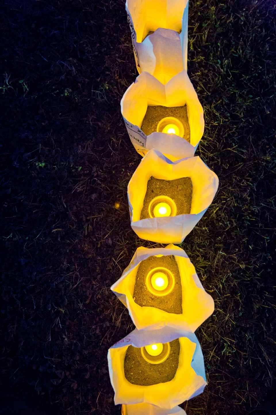 How money is raised? People purchase paper luminary bags and decorate it. At night, a battery operated LED tea light is placed in the bag for the amazing Luminaria event. We supply the lights and here are some pictures from a recent event. Our lights are bright, consistent, long lasting, affordable and reliable. They can also be re-used year after year. All you have to do is change the batteries and we supply those as well.