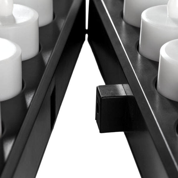- Charging base charges 12 candles at once. You can connect up to 3 charging bases on 1 power supply (a total of 36 candles).
