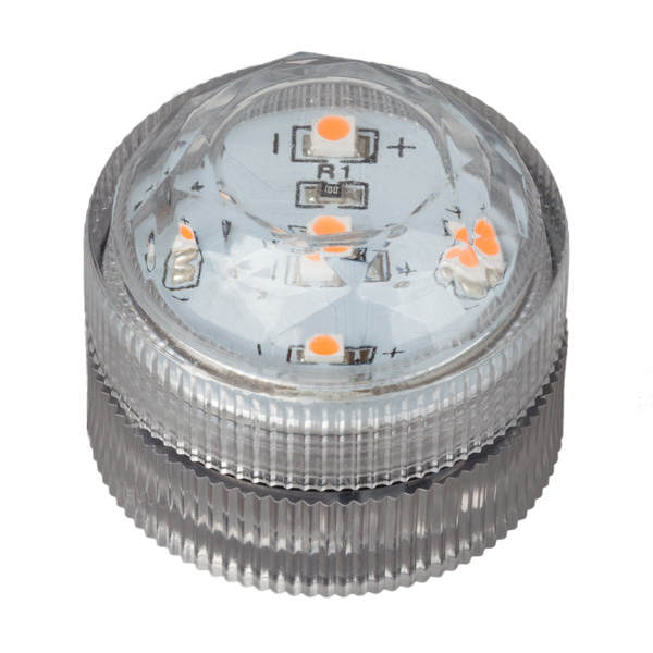 Perfect for lighting up vases, bowls, or any water-filled containers. These submersible lights are often used for centerpieces. They make great party favors as well. These lights will sink to the bottom, they will not float on their own. If you want them to float, you can place them on a plastic plate, or try our Floating Battery Candles. Available in a variety of great colors. AKA: Submersible Tea Lights or Waterproof Tea Lights. Click the following link if you need extra Replaceable Batteries for these 5 LED Submersible Tea Lights. Protected under Patent D689,221S.