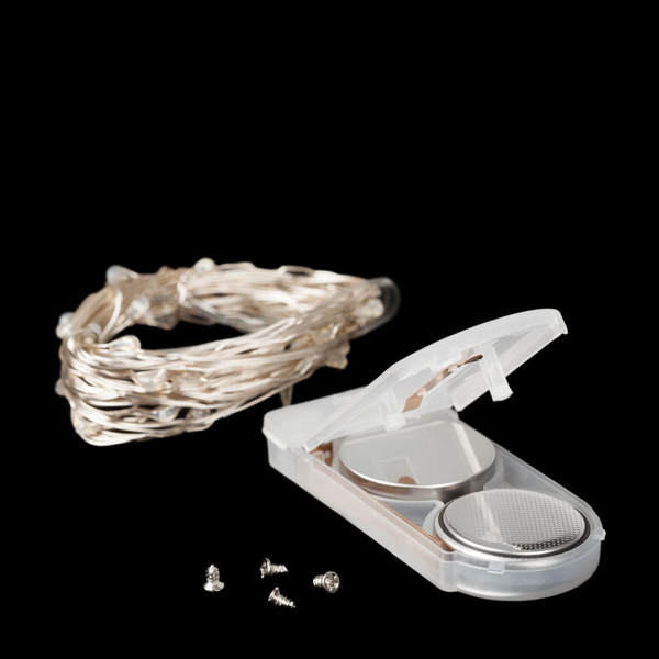 - Each string light has its own battery pack of 2x CR2450