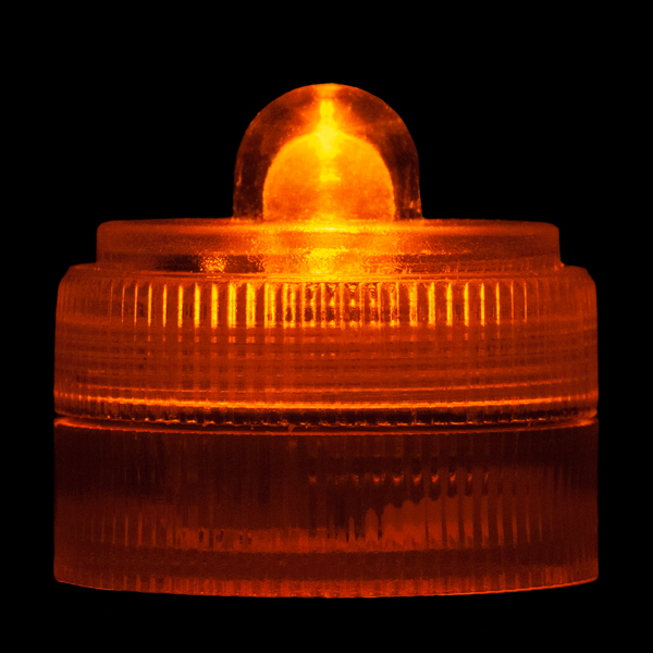 These Remote Controlled Orange Submersible LED Lights feature an On/Off Switch and are ready to use out of the box. They are slightly larger than our regular submersibles because of the larger batteries for longer life. They use 2 x CR2450 batteries which are included and are already installed. These batteries are also replaceable!