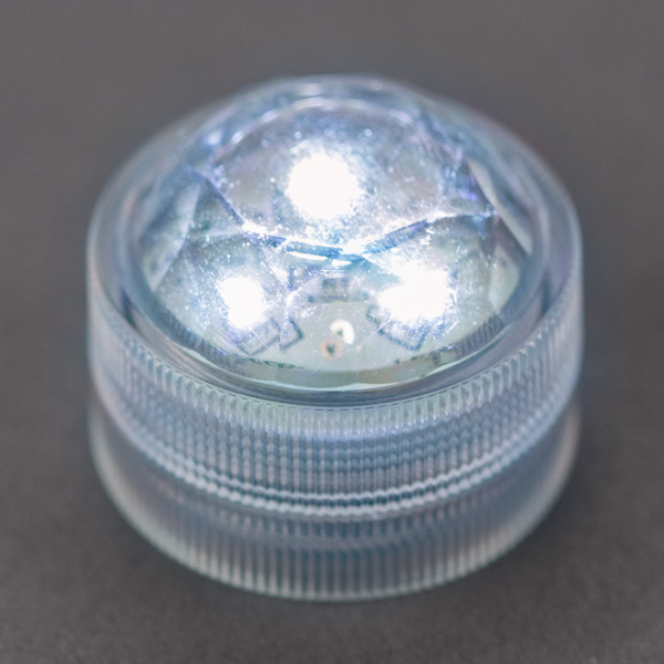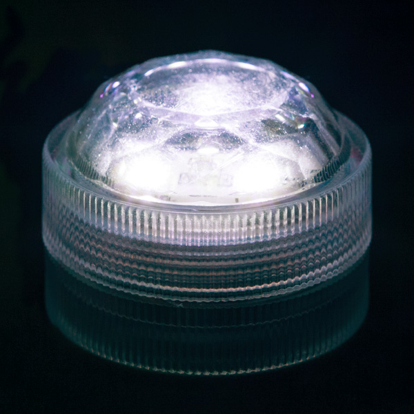 These water proof Triple LED White Submersible Lights are available in a variety of great colors. They are about 1.20 Inches in diameter by about 1.1 Inch high, and therefore fit standard Tea Light Holders. That's why they are often called Submersible Tea Lights or Waterproof Tea Lights.