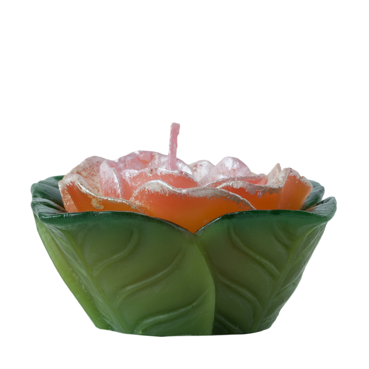 Floating Mini Rose with Leaf Candle - Pink - Valentine Flower