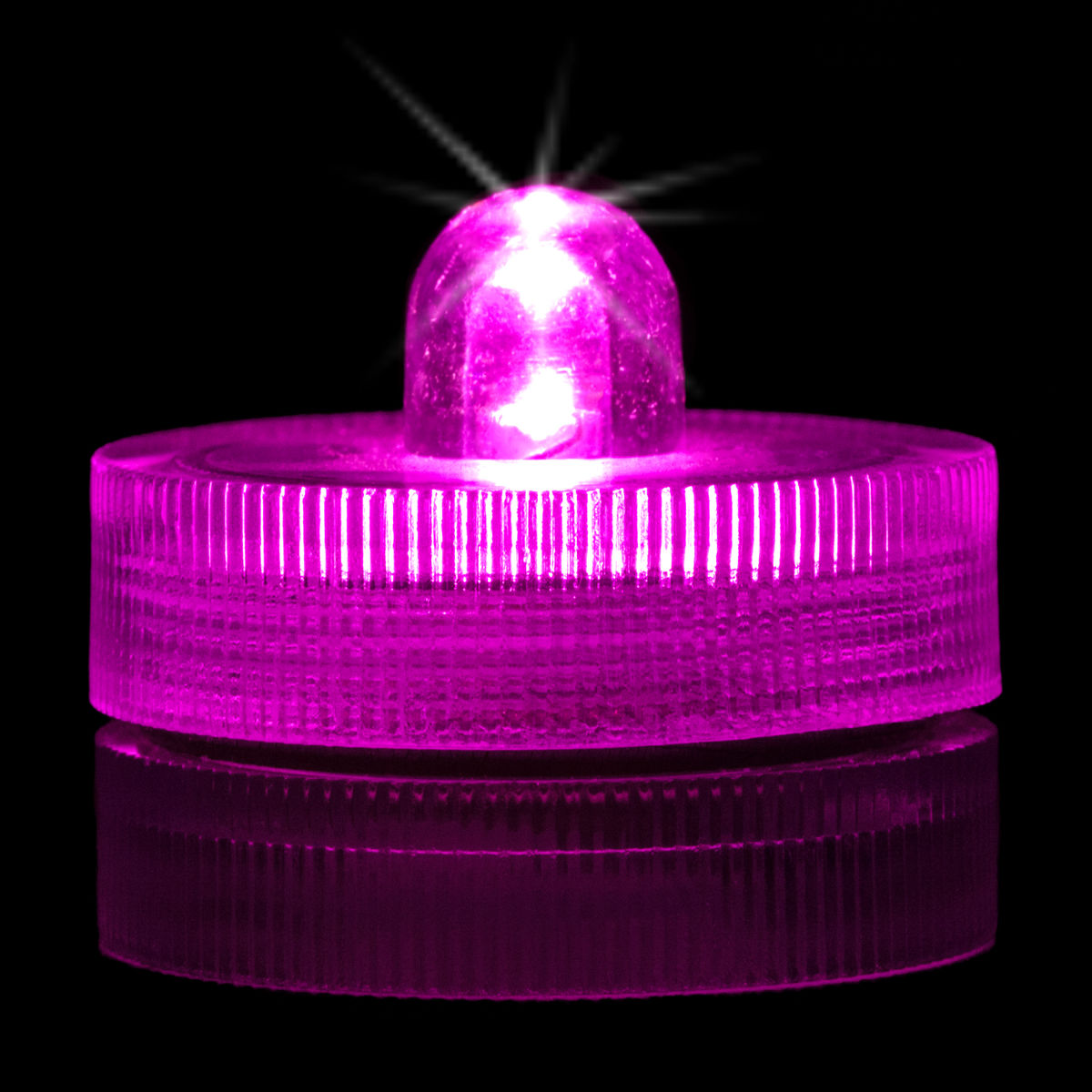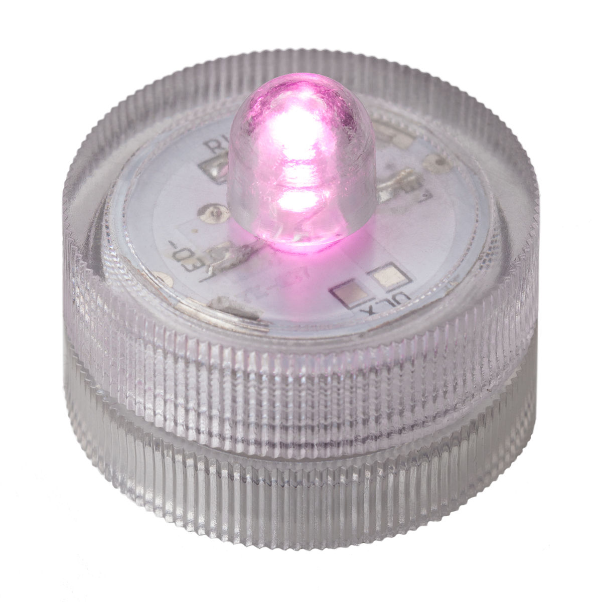 These water proof Pink LED lights are available in a variety of great colors. They are about 1.20 Inches in diameter by about 1.1 Inch high, and therefore fit standard Tea Light Holders. That's why they are often called Submersible Tea Lights or Waterproof Tea Lights.